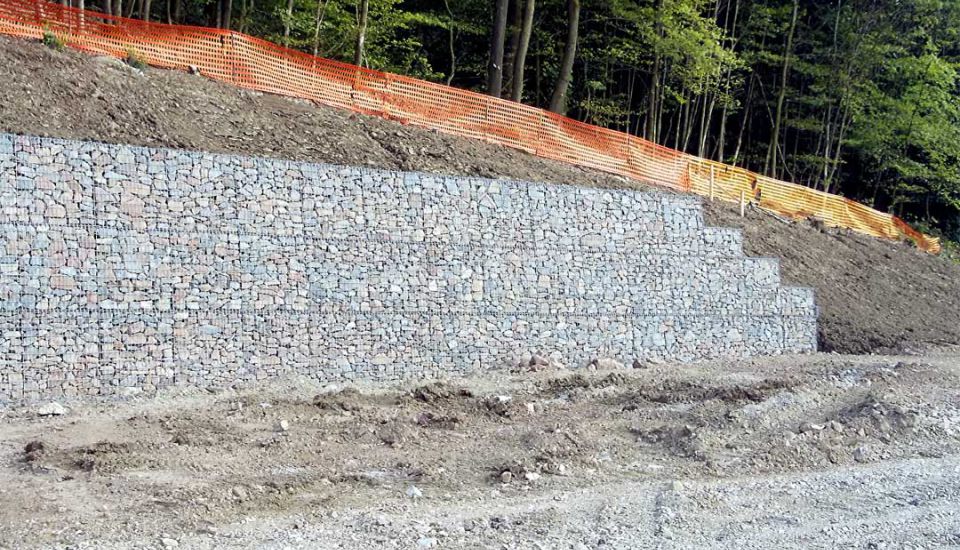Sofortiger Schutz: Steinkörbe dienen nach dem Aufbau direkt als Schallschutz, Sichtschutz oder Hangsicherung.